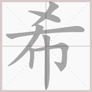 希的笔顺,希的笔画顺序 希的笔顺,希的笔画顺序,下面是希的笔顺详情 希笔顺动态图: 希的笔顺名称: 撇、点、横、撇、竖、横折钩、竖、 希的笔顺图: 希的笔顺读音: 希的笔顺号: 3413252 希的部首: 巾 希字笔画数: 7画 希字结构: 上下结构 笔顺